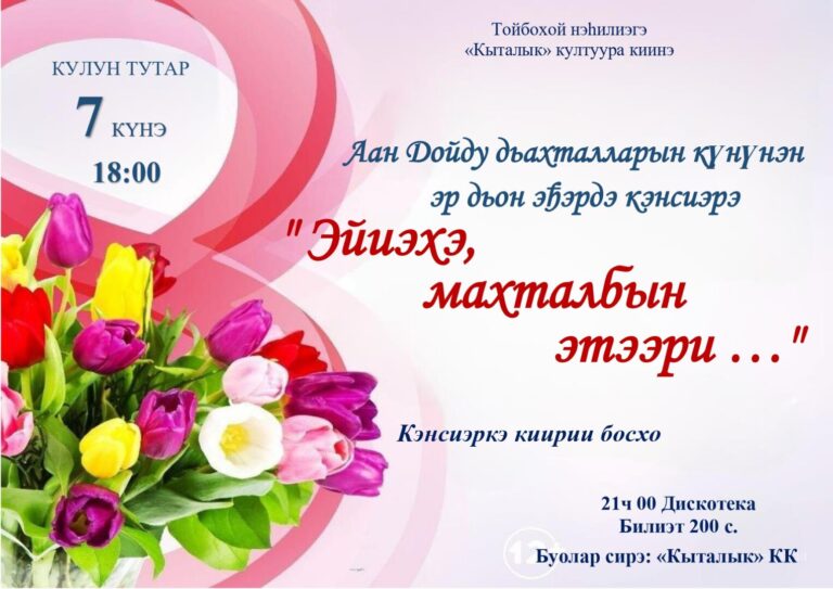 Ахсынньы 31 күнүгэр ааьан эрэр 2025 сылы бииргэ атаараары, эҕэрдэ, махтал тылларын нэһилиэкпит олохтоохторугар, ыалдьыттарыгар этээри киэркэйбит кулууппутугар муһуннубут. Кэлэр…